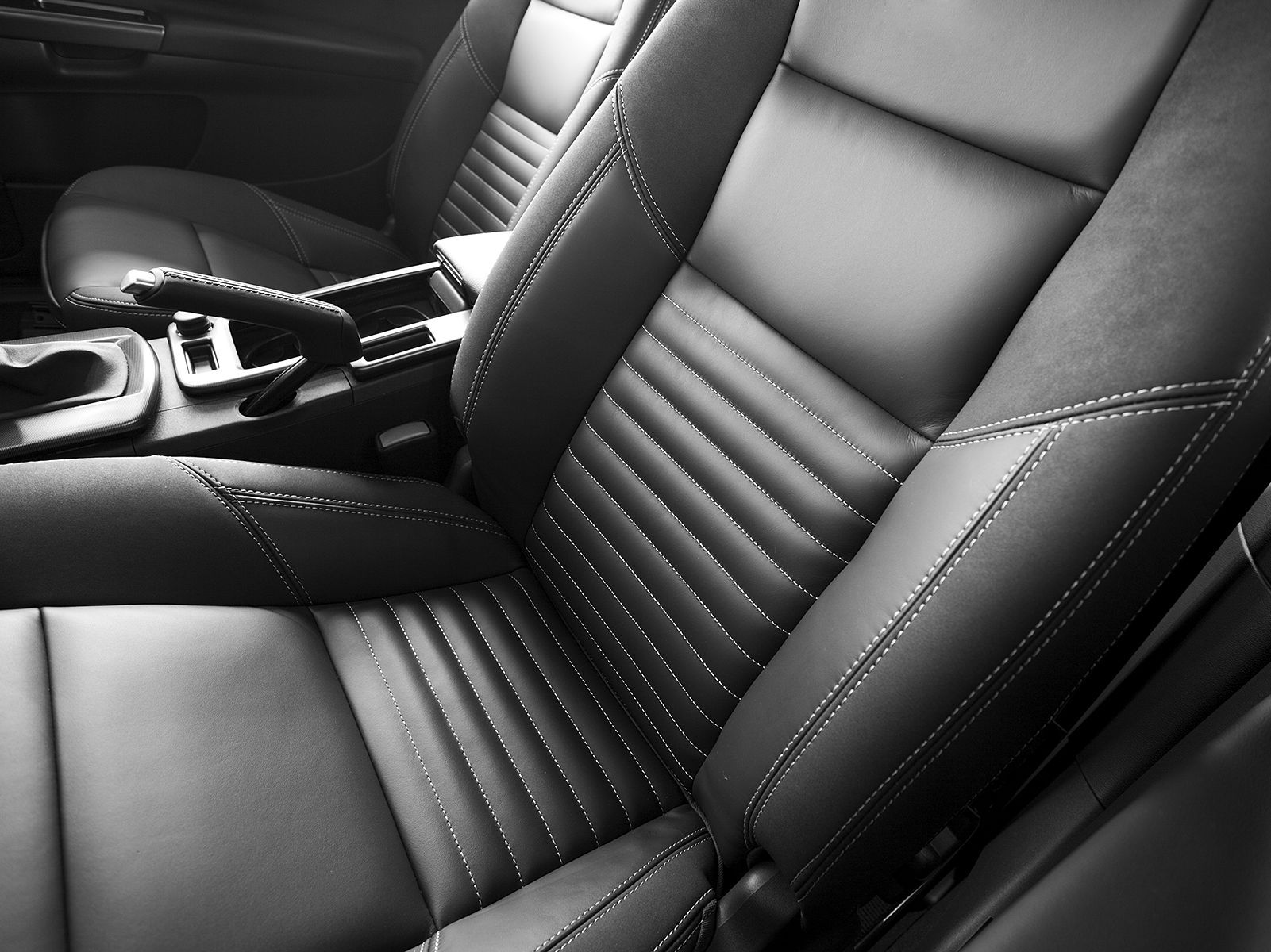 Mit rotem Hebel im Fußraum des Fahrers.
